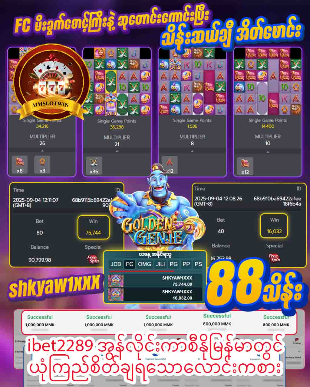 - စလော့ဂိမ်း (Slot Games) – အရောင်စုံအလှဆင်ထားပြီး၊ ချက်ချင်းအနိုင်ရနိုင်သည့် ဂိမ်းအမျိုးအစားများစွာကို အသုံးပြုနိုင်ပါသည်။