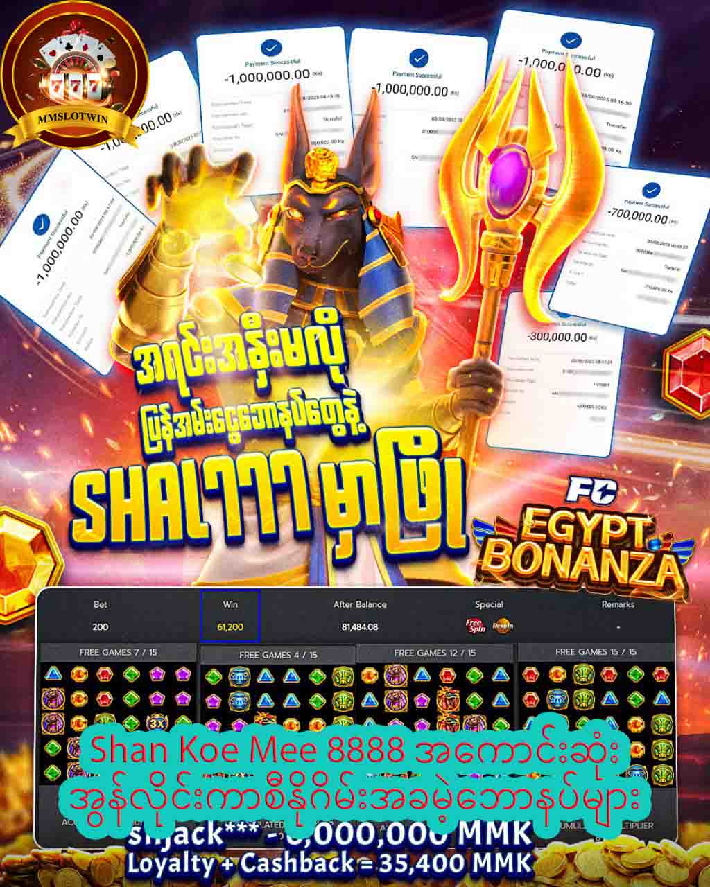 - ပရိုမိုးရှင်းနှင့် ဘောနပ်: Shan Koe Mee8888 App တွင် မန်ဘာသစ်များအတွက် ပရိုမိုးရှင်းများ၊ အခမဲ့ ဘောနပ်များနှင့် ထူးခြားသော ဖရီးစပင်များပါရှိပြီး ကစားသမားများကို ထပ်မံအနိုင်ရရန် အခွင့်အလမ်းများ ပေးပါတယ်။