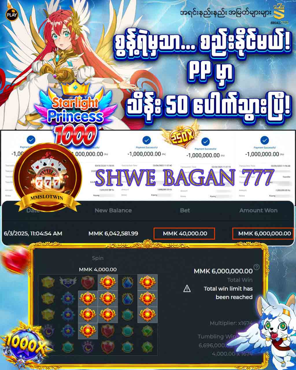 Shwe Bagan 777 ဆိုသည်မှာ မြန်မာနိုင်ငံရှိ လူကြိုက်အများဆုံး အွန်လိုင်းလောင်းကစားပလက်ဖောင်းတစ်ခုဖြစ်ပြီး၊ slot game များ၊ live casino များ၊ ငါးပစ်ဂိမ်းများနဲ့ 2D/3D ကဏန်းများအထိ ကစားနိုင်သော ပလက်ဖောင်းအဖြစ် အသုံးပြုသူများကြားတွင် နာမည်ကြီးလှပါတယ်။