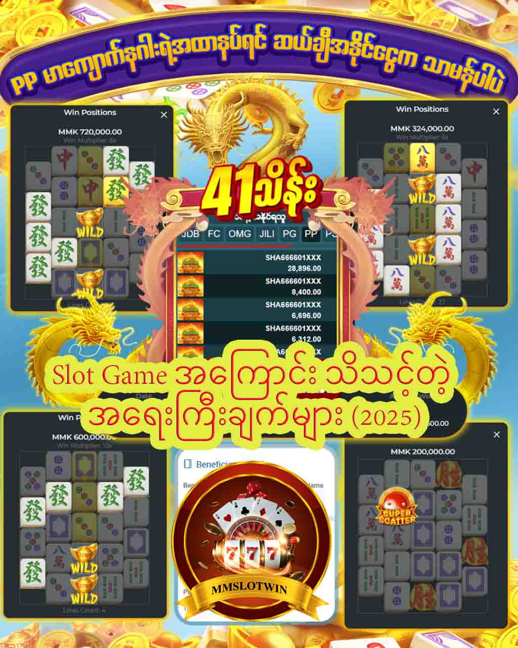 - Max Win & Feature – မက်စ်အမြတ်၊ Bonus Feature များ ရှိ/မရှိ။